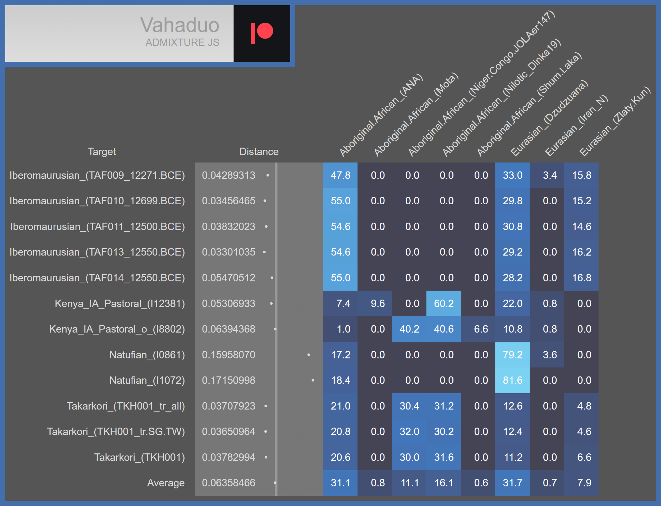 The formal statistics program qpAdm (QP Admixture) confirms the above models of TKH001, as can be seen in the below image.