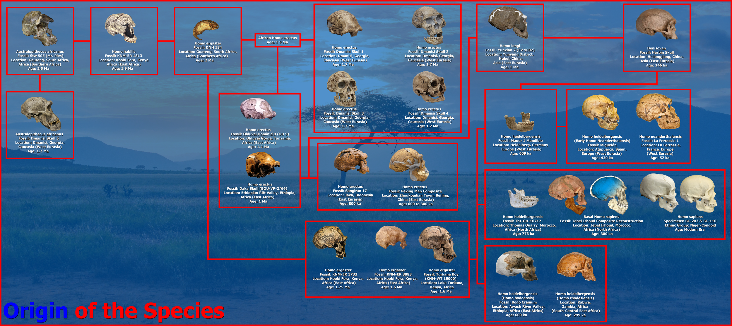 Australopithecus → Homo habilis → Homo ergaster & Homo erectus | Australopithecus → Homo habilis → Homo ergaster → Homo erectus