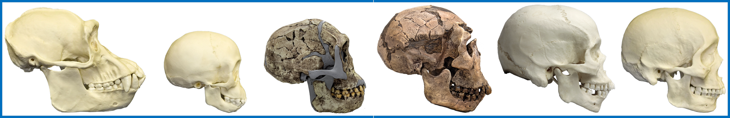Neoteny is actually a key characteristic of the hominin lineage, which is why pre-adolescent and more mature Homo crania actually bear strong morphological similarity to those of infant chimpanzees (see the above image). This is consistent with the divergence between panins and hominins being the most recent divergence between extant ape lineages; the recency of this divergence indicates that the morphological traits that are shared by infant chimpanzees and more mature Homo individuals were present in our common ancestors.